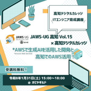 【ITエンジニア育成講座】JAWS-UG高知 Vol.15 x 高知デジタルカレッジ「AWSで生成AIを活用した開発と高知でのAWS活用!」